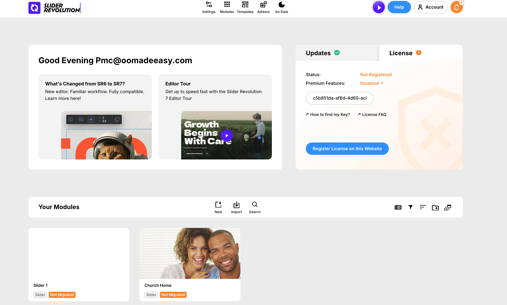 https://www.hopeforhealthusa.com/ - here is one example…when I try to register with the xtheme license it will not accept it…can you please help me to get this back up and running please?