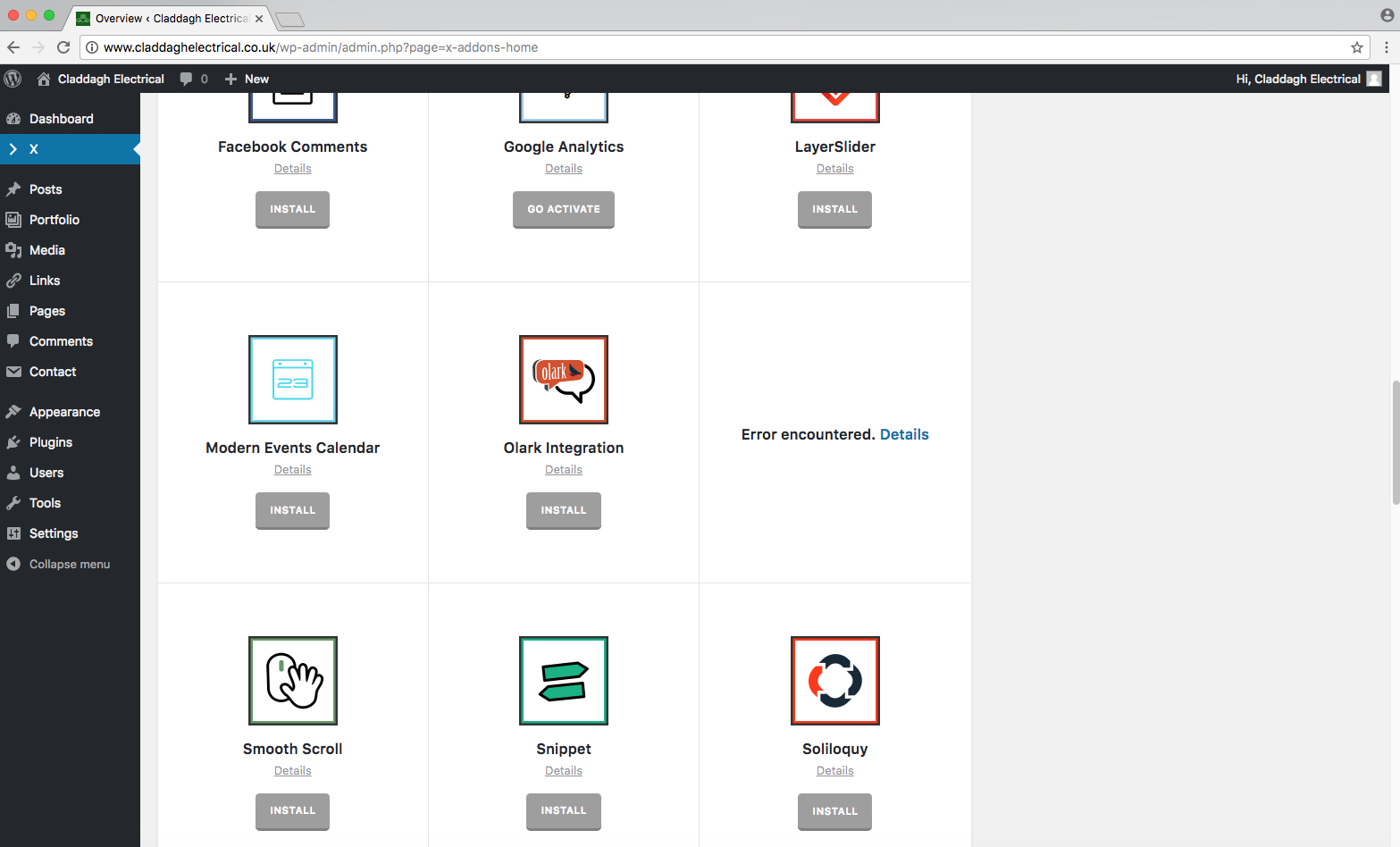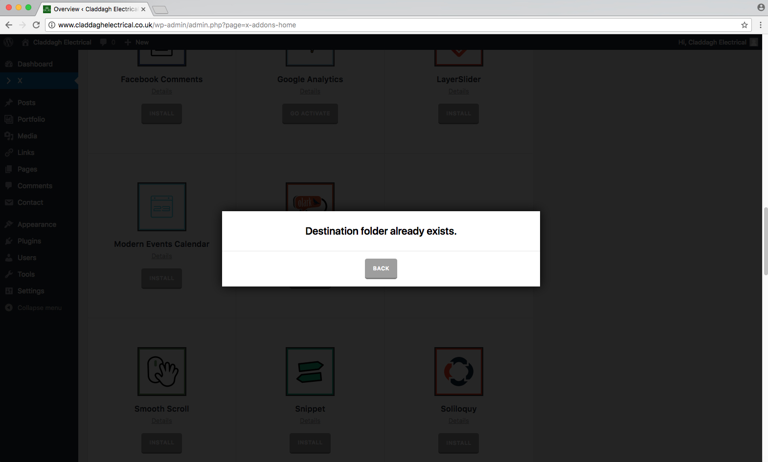 Hi, I’m just setting up a new website and have X Theme on many other sites without having problems installing their own plugins. But this time, for some reason, Slider Revolution isn’t installing and keeps coming up with an error message ‘Error Encountered. Details’. When I click on ‘Details’ it then says ‘Destination folder already exists’ but when I click on ‘Plugins’ it isn’t in there and hasn’t been installed.