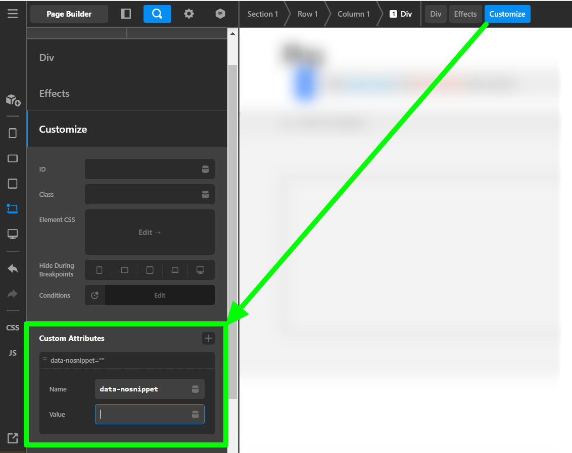 Ex : <div data-nosnippet>not in snippet</div>