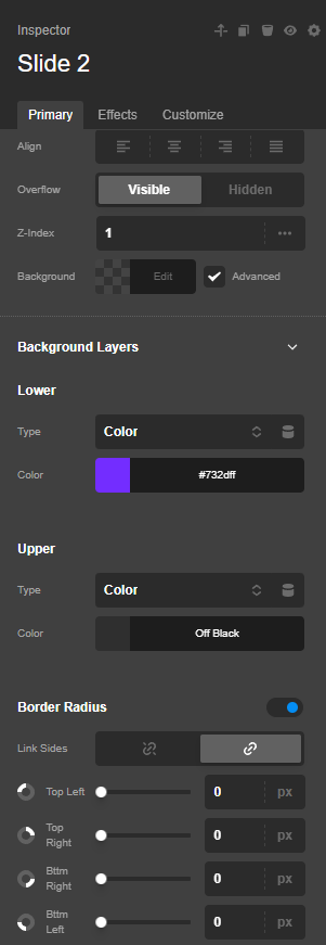 I have the #2 slides background set to purple, so if its set to 50vw, how come the right side isnt transparent, and showing the #3 slide below?