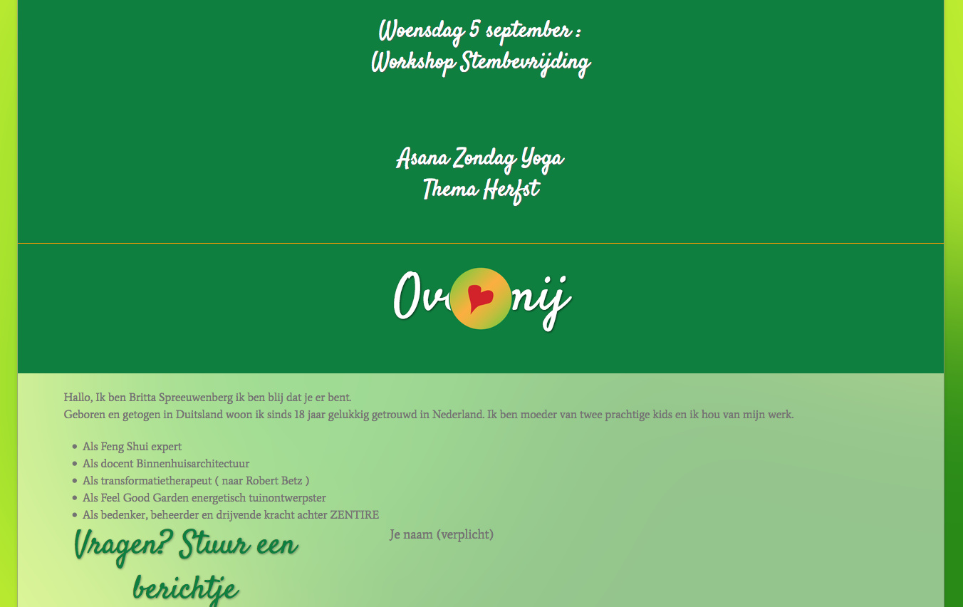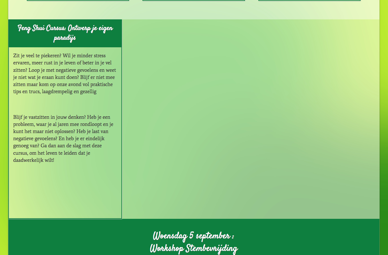 This website - https://zentire.nl - is kind of messed up, especially in the sections ‘Cursusaanbod’ and beyond. No idea what’s happening. Could you take a look to see if you can find smething wrong there?