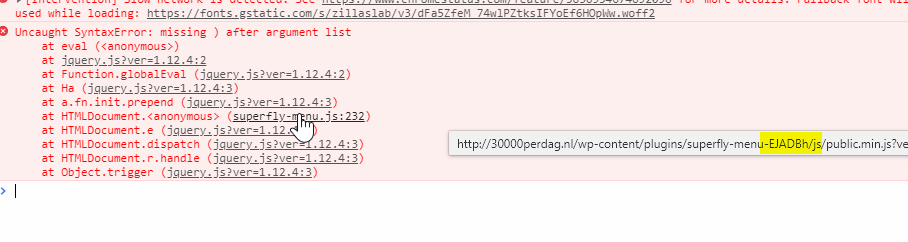 Kindly check this code and fix or remove it and clear your site’s cache then check if the Superfly Menu displays.
