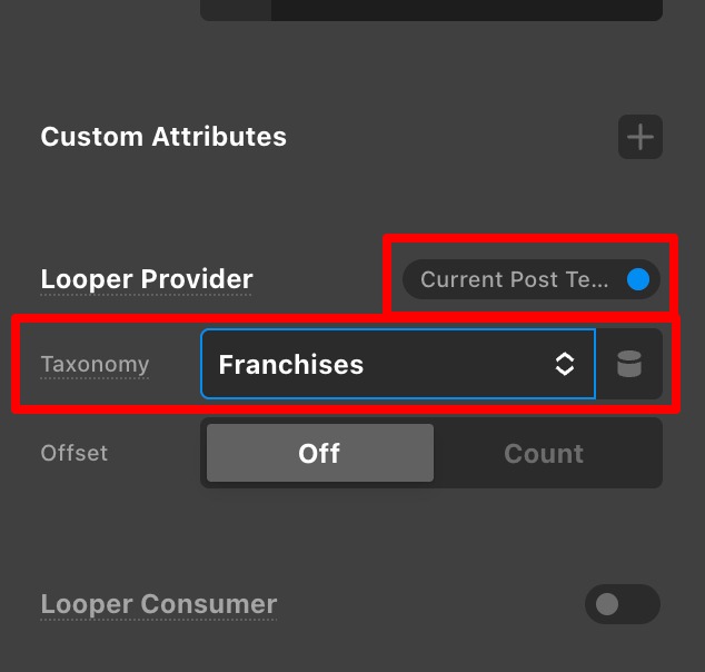 Hi @prakash_s ! It doesn’t seem to work. How can one use another looper when we’re only allowed one looper provider? If these are nested loopers, is it “Div” with Current Post Types with Franchises selected and then the “Post Loopers” inside with that exact query string? And am I supposed to be changing something in the string?