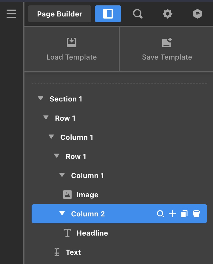 Thanks for writing in! You can insert a 4 column row inside a Section element. You can then nest a Row inside a Column so that you can insert an Image and a Headline Text. And then a Text element below it. You may have something like this: