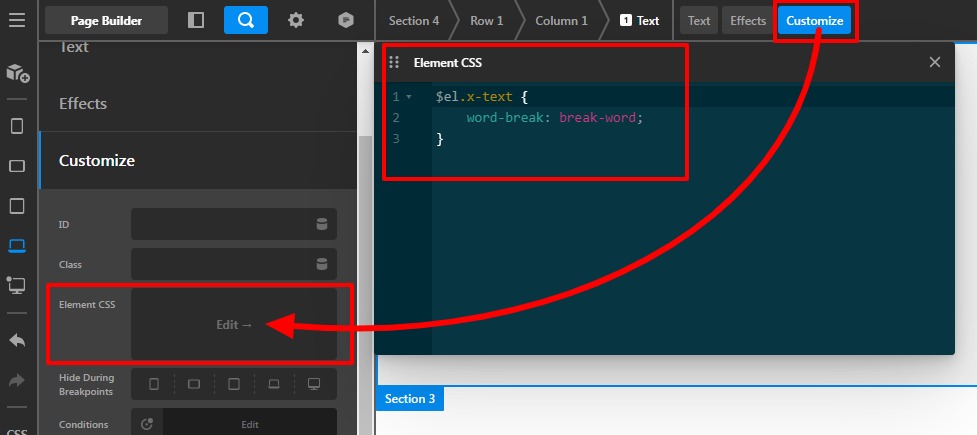 I would suggest you add this custom element style on the Text element for that you need to go to the page —>Text element —>Customize —>Element CSS
