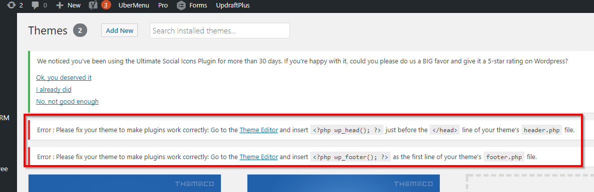 Changing that to line 1 didn’t seem to make a difference because the error was still there after refreshing. But, I’m wondering why there error is telling me to go to the footer.php in the theme editor and add it there. Why is that one different from the one I got via ftp.