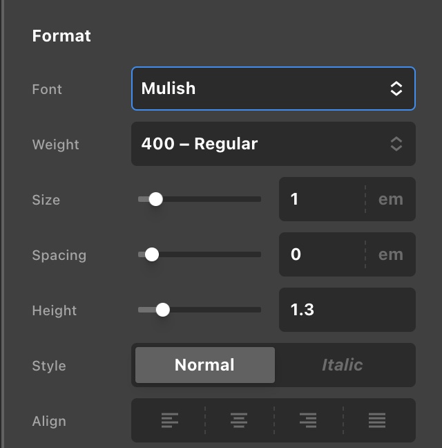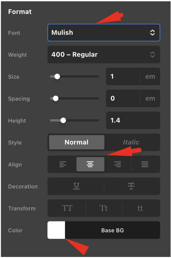 We’ve applied the new font specifics (mainly using the font Mulish for headlines rather than the old font Josefin Sans, which we’re maintaining for body copy) in the theme editor. However, when we add new text and/or headline elements, none of the headline specifics are applied. They always show up as a the same basic Josefin sans block, no matter which headline we specify.
