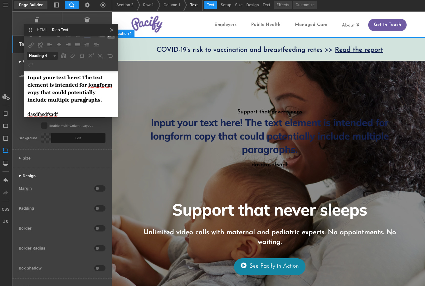 Hi there, hoping you can help please! I have a pretty extensive site (117 pages). We recently completed a brand refresh and need to make some aesthetic changes to the site (fonts, colors, etc), and would like to do so without having to rebuild the whole site from scratch. We’ve cloned the site in our dev environment: