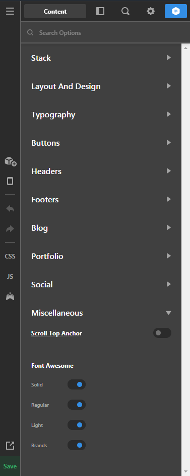 I don’t know if this is intended behaviour but you can’t close a section in the Theme Options by clicking on the section name or arrow icon.