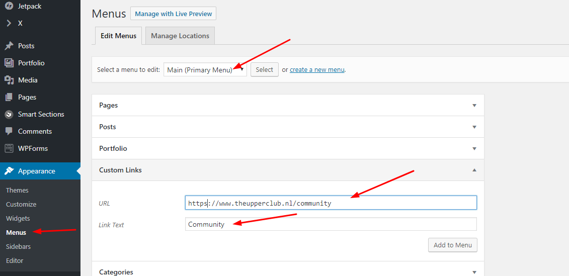 I added the pages by using pages option in dashboard and created several menu’s to make sure all menu’s where in place with the right pages behind it.