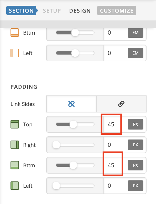 P/S: there is the top & bottom padding of your sections, I keep them because we still need the spacing between your sections.