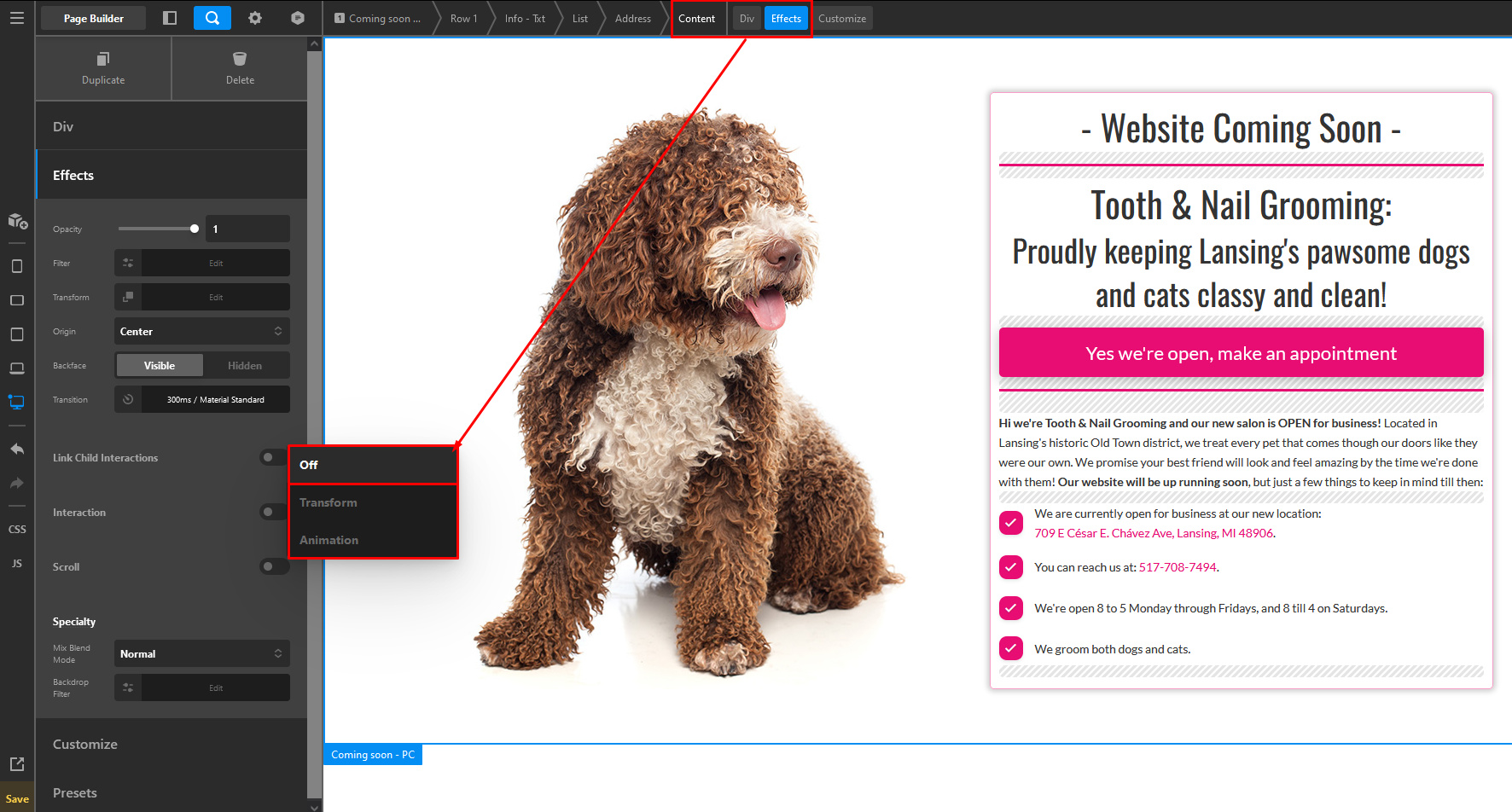 You’ll notice that that content on the bottom of the page is not loading cause I need to scroll down for it to load. How do i turn this off. And FYI this is a poor design choice, effects SHOULD NOT be attached standard to new elements.