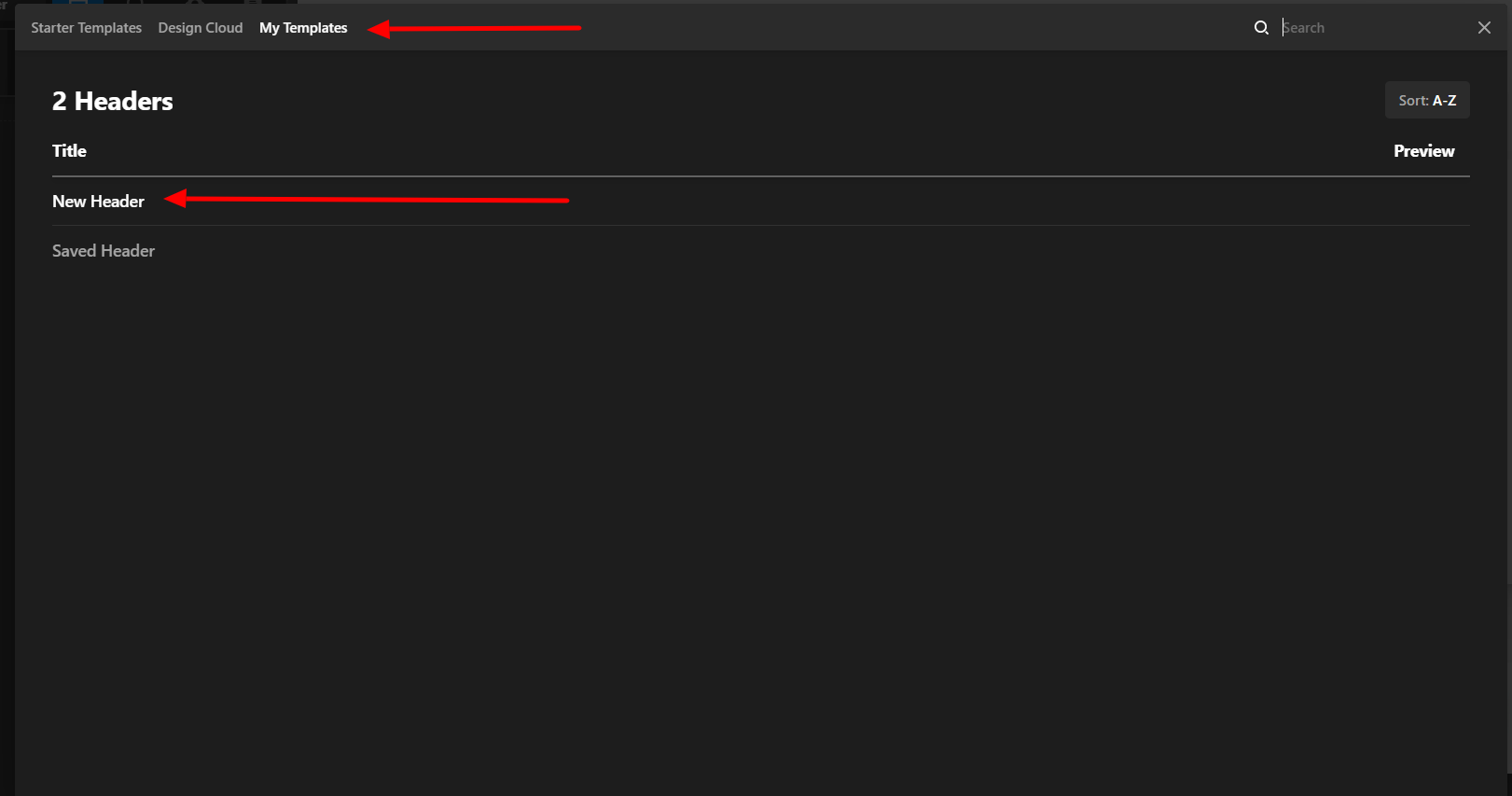 I cannot find a way to upload Header or Footer Template that I have saved in my Templates.