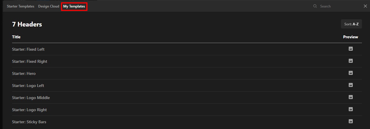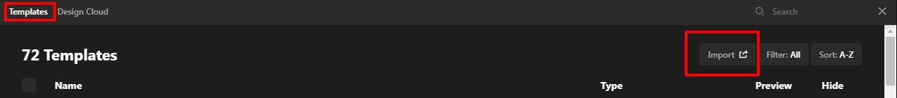 When importing a header, if the option to select a template (see attached) doesn’t appear, where can I find this option? It is currently showing me one of my web pages instead.