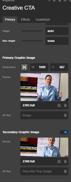 However, is there a way I can make the ‘Secondary Graphic Image’ a video as the source… I think this would be better for speed. Thanks again