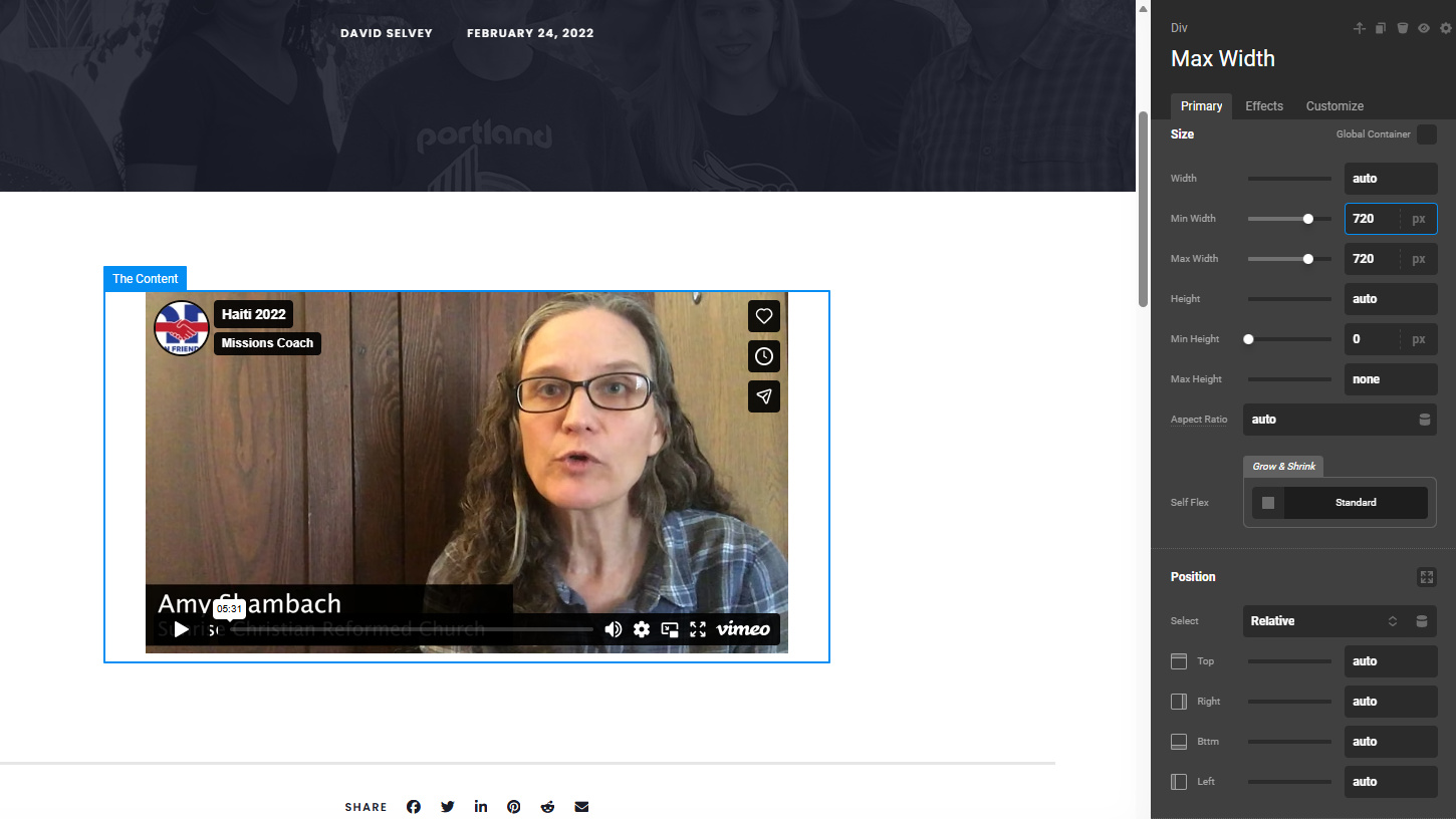 I’ve spent about over an hour trying to figure this out. I was using the Vimeo page URL and then found the support forum topic that said you couldn’t use that in the Vimeo player block. I’m trying to use the HTML embed option, but I can’t get the video any larger on my page than this: https://lightslategray-ibis-392813.hostingersite.com/haiti-vision-trip-2022-1-video-report/