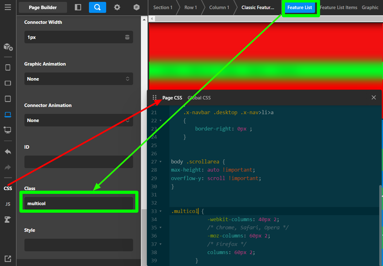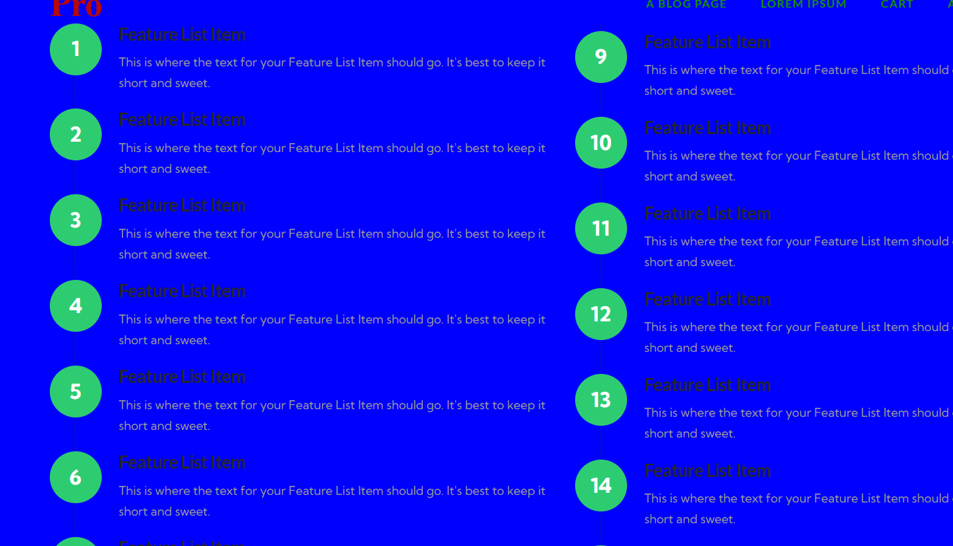 I have 16 Classic Feature List items and I need them numbered. They are all in one column now. I’d like to have 8 items on left then 8 items on right. It’s all in one column now because if I try to make items 9-16 on the right side it doesn’t work. So for now, to show support the entire list, I created one column for now.