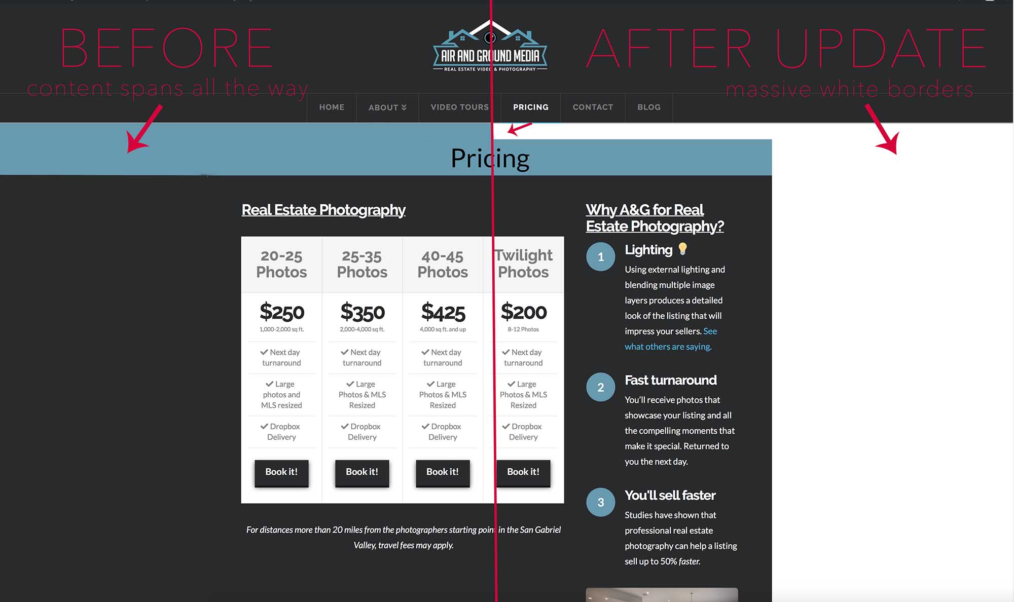 hi sir please see here the before and after of what the website looked like before update and now afterwards
