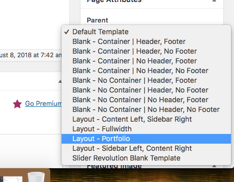 Regarding the portfolio Issue, I can see the page template set to the default template.