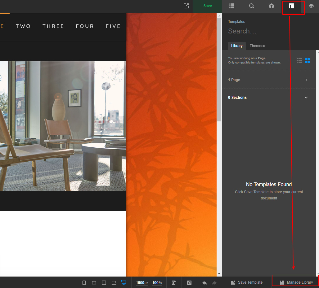 To find the template, click any of your pages in the new Cornerstone dashboard then click the template icon. At the bottom right part, you will see the manage library, that is where you can find the import/export template.