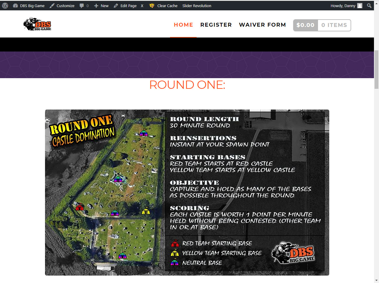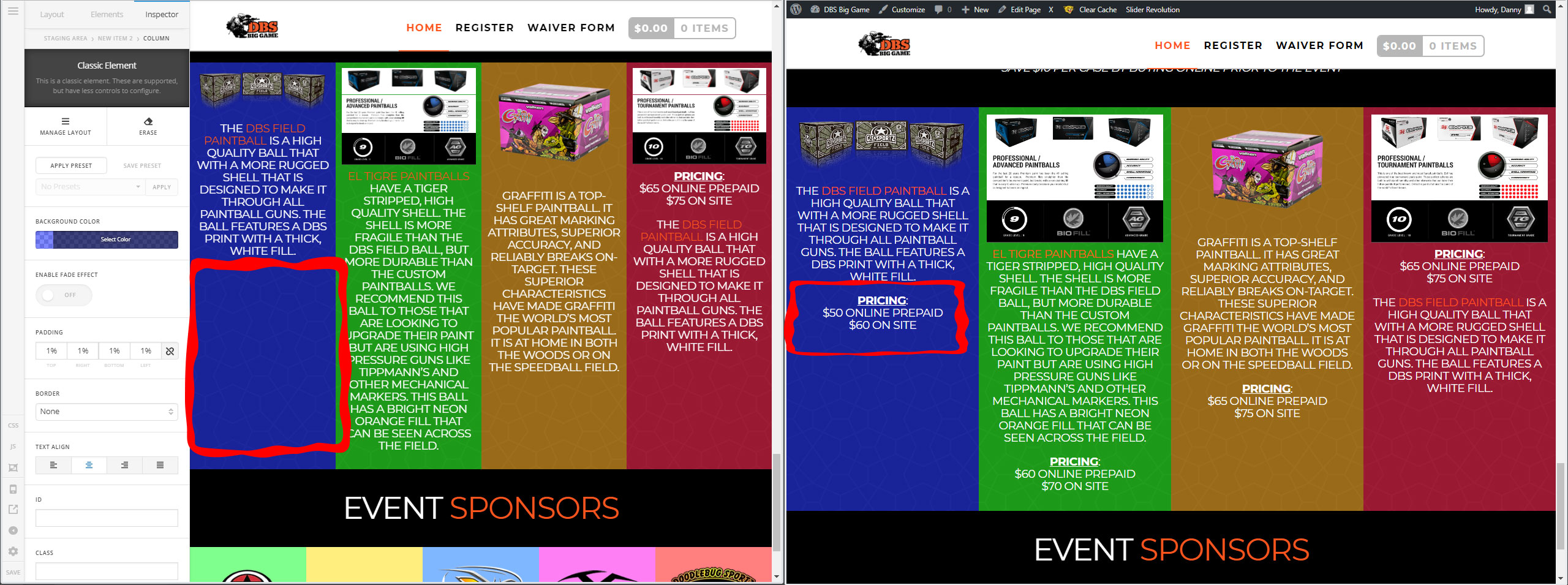On one of my sites I am working on (www.dbsbiggame.com) an area has a white background when it should have a image with a color over it. If you go to www.dbsbiggame.com you will see it where it says ROUND ONE. I have added an image showing the white background, but it should continue to have the purple patterned background… how do I fix it?