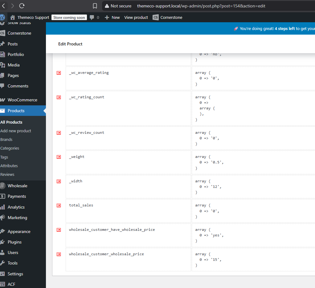 I have edited only one product as a test, adding a wholesale price: