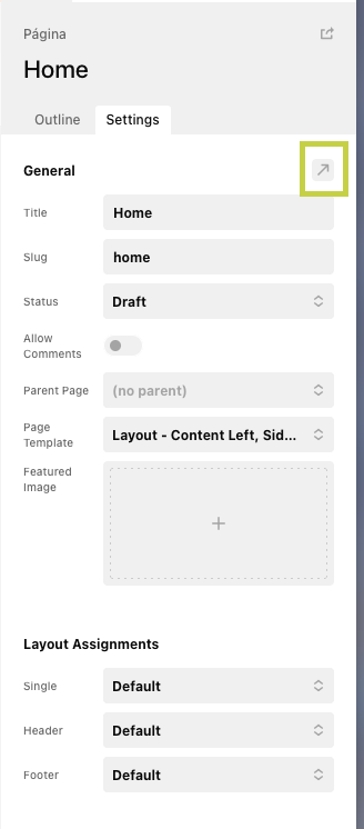 This opens the page in the WP Editor where you have further Page settings: