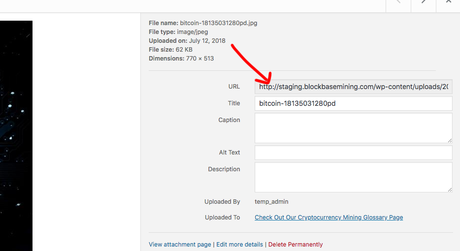 Please add the URL inside the brackets. Just upload the image in the media uploader.