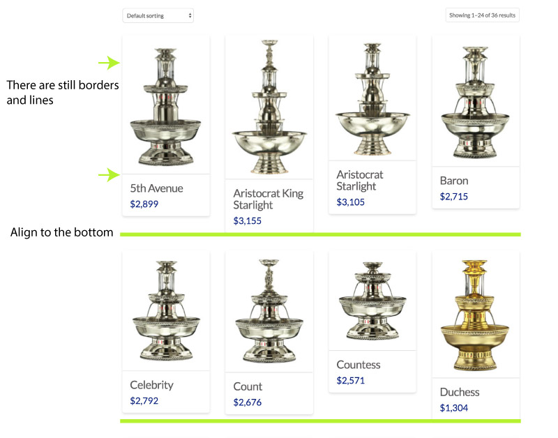 - I’d like to remove all boxes and box shadows plus any separator lines from products. In other words, just the image (with square corners), product title, then price. In the Customizer you’ll see CSS which accomplished this on another Integrity site but doesn’t seem to be working correctly over here.