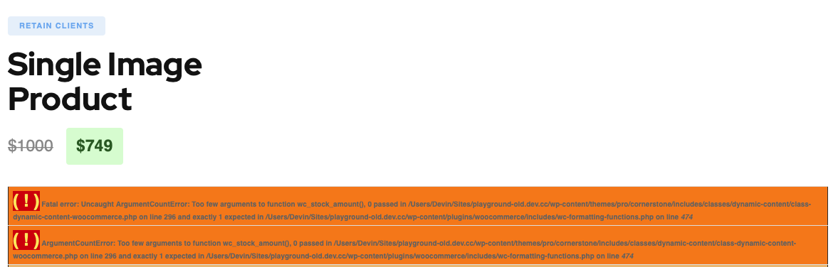 It does this if I add the Product Stock preset, or just try to put the DC somewhere else on the page. (The product has inventory set, with quantity available)