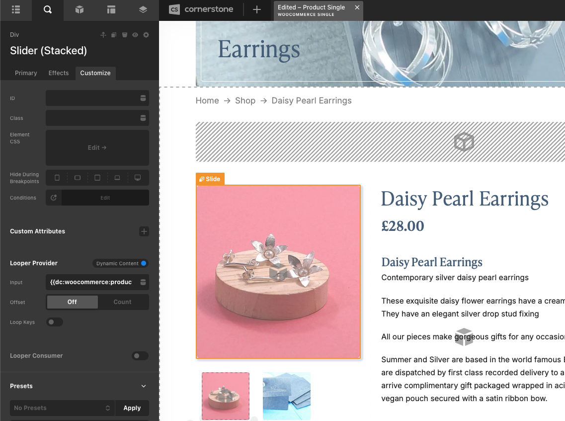 Ideally I’d like the main slide to show the product image and for it to also appear in the slider image pagination.