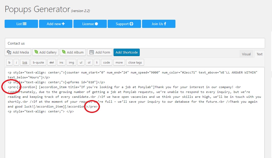 This window reflects the same code which I have for this not pop-up page: https://www.ponylab.studio/contact-us/