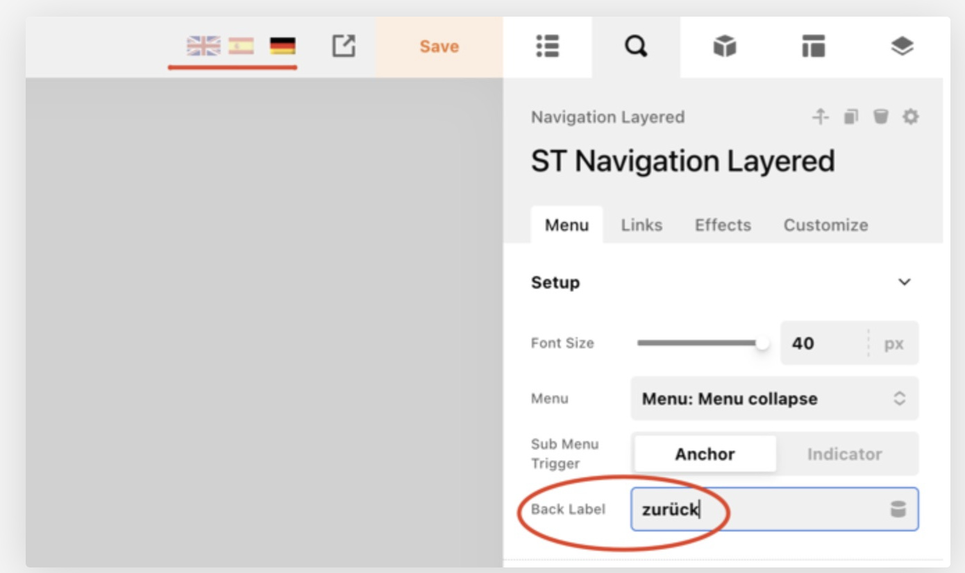 Sorry, i still had this topic but the issue in the forum was closed before I could answer. Still have the issue after update to the latest version of pro. I can not translate or modifie the navigation in cornerstone editor. The menus are already translated but i want to change the “back” link in spanish and english. When I go to the other language in cornerstone (click on the flags)