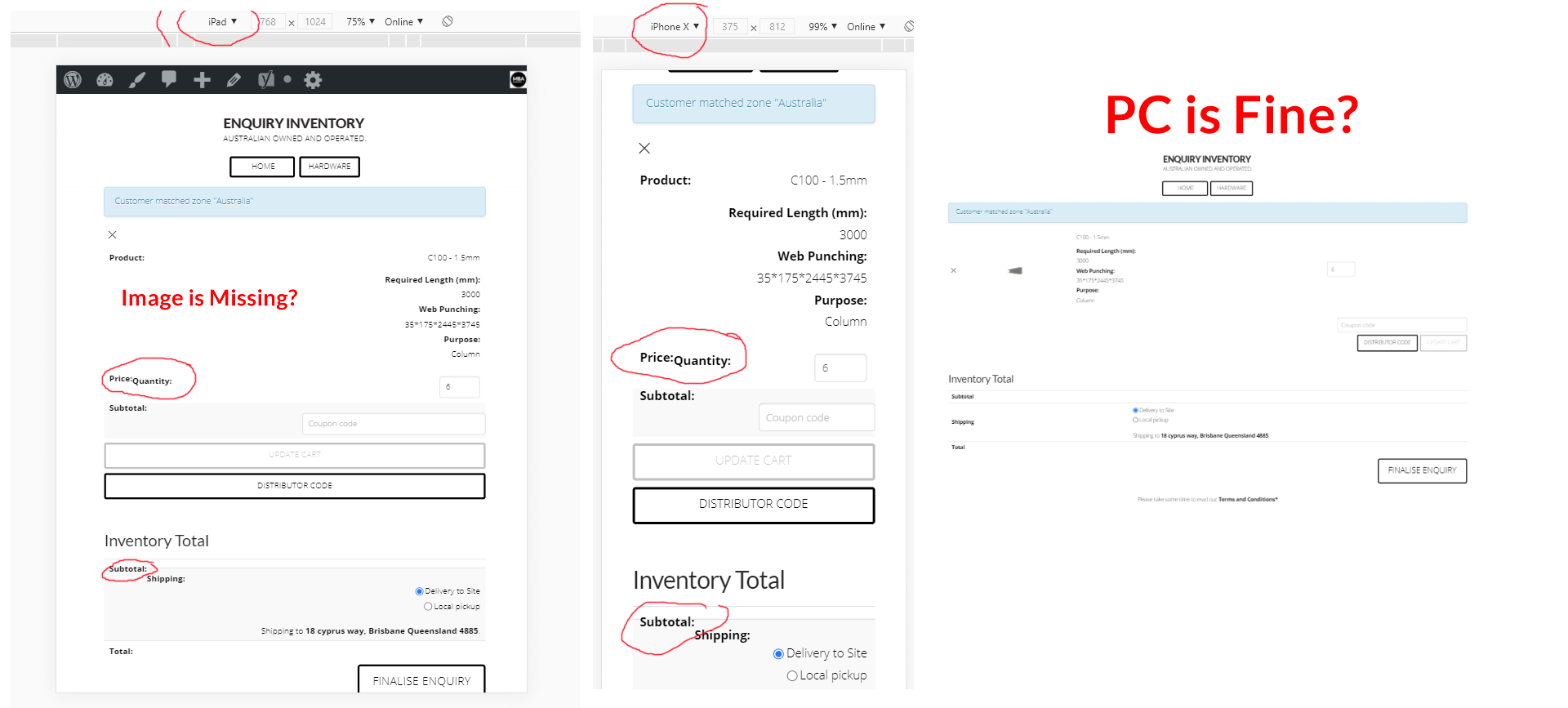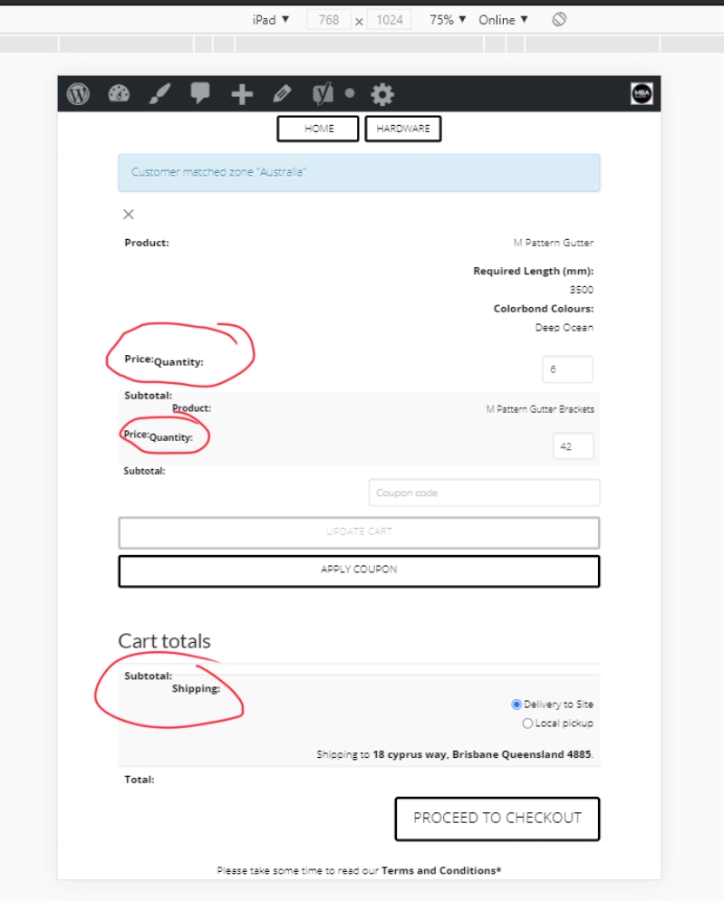 In the Picture you will see im having some problems in the Cart Screen,
